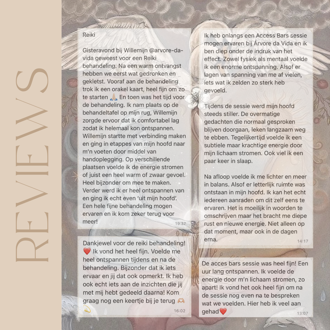 Mijn missie is om mensen te helpen bewust te worden van de signalen die je lichaam geeft. Voelen wat je lijf vertelt en niet alleen in je hoofd zitten. Innerlijke rust en ontspanning creëren door het geven van Reiki en Access Bars behandelingen. Klinkt dit als iets wat jij graag zou willen, neem dan gerust contact met mij op.